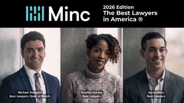 Aaron Minc, founder of Minc Law, and Dorrian Horsey were selected for inclusion in The Best Lawyers in America® for their excellence in Commercial Litigation. Michael Pelagalli was named to Best Lawyers: Ones to Watch® in America for his accomplishments in Commercial Litigation.